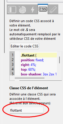Ne pas oublier d'ajouter la classe "flottant" à la colonne dans le champs prévu